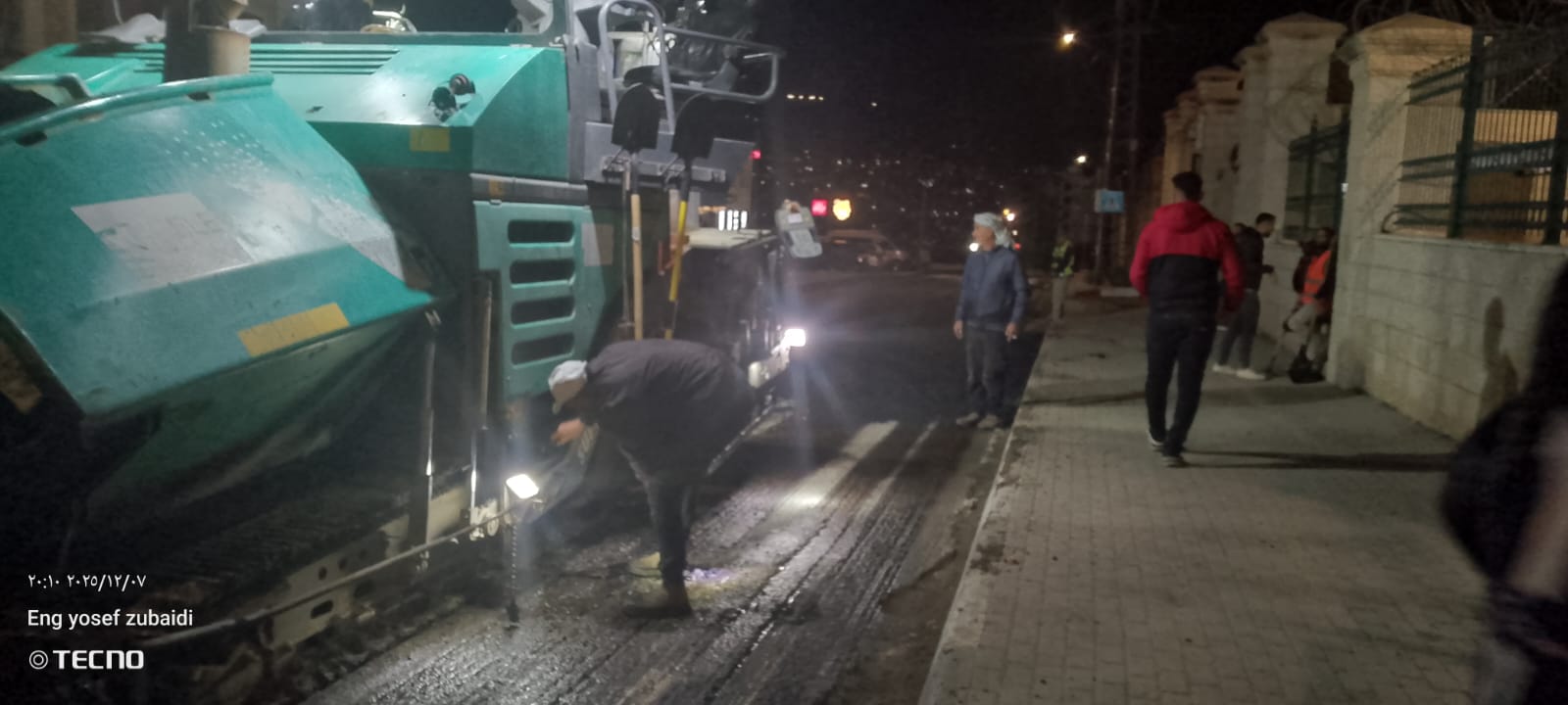 على مدار ساعات الليل ، عملت الطواقم الهندسية، قسم الإشغال على تعبيد جزء من الشارع الدائري ، المقطع الممتد من دوار بسام الشكعة نزولا إلى باب الأكاديمية الشمالي ، وذلك ضمن ميزانية العطاء السنوي لتعبيد وتأهيل شوارع داخلية.
