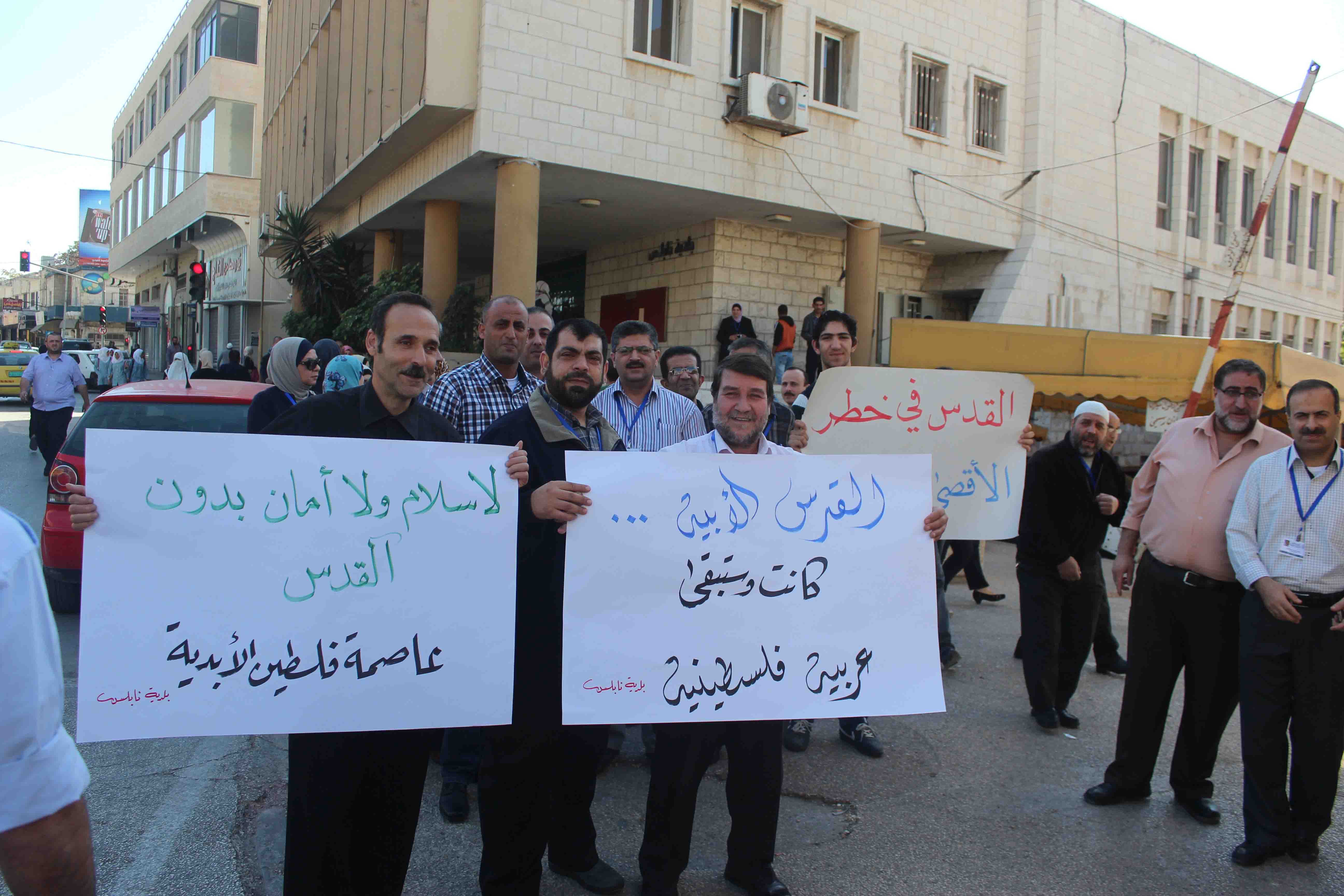 بلدية نابلس تنظم اعتصام تضامني مع القيادة الفلسطينية