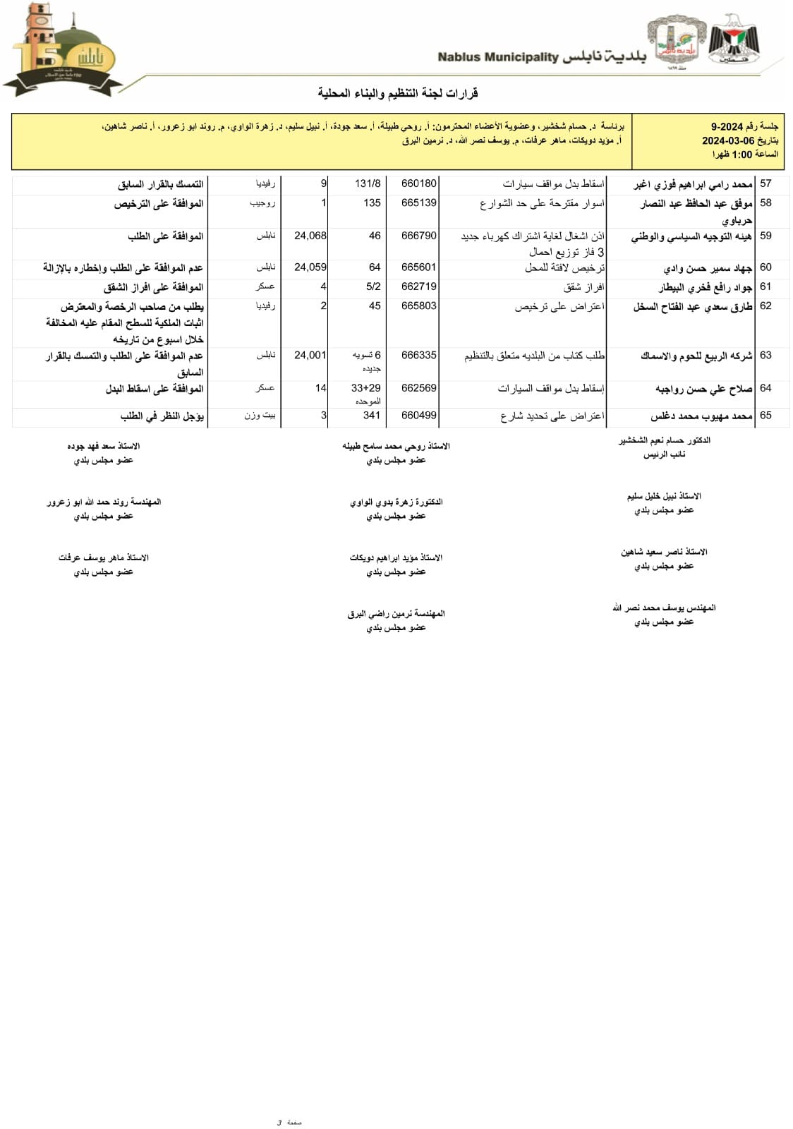 قرارات جلسة التنظيم والبناء المحلية بتاريخ 6-3-2024